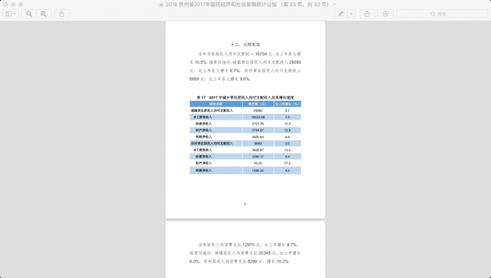 2018 贵州省2017年国民经济和社会发展统计公报