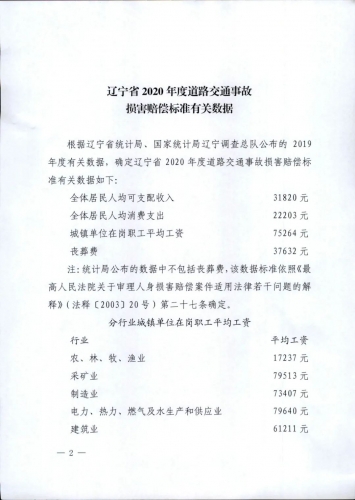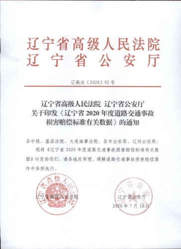 辽宁省高级人民法院 辽宁省公安厅 关于印发《辽宁省2020年度道路交通事故损害赔偿标.jpg (72 KB, 下载次数: 560)