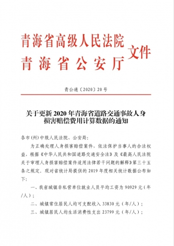 2020 青海省关于更新道路交通事故人身损害赔偿费用计算数据1.jpg (131.62 KB, 下载次数: 545)