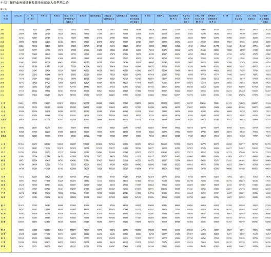 中国2022统计年鉴C04-12按行业分城镇非私营单位就业人员平均工资-新疆(2021).jpeg