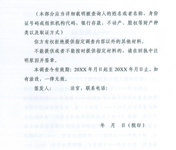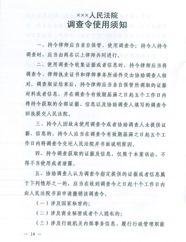 1. 调查令(民事审判程序用)