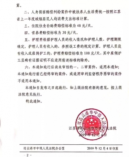 江苏省连云港市中级人民法院关于统一全市城乡居民人身损害赔偿标准的通知2.jpg (136.25 KB, 下载次数: 602)