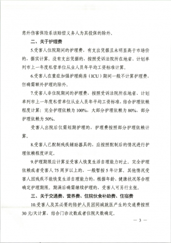 浙江省高级人民法院印发《关于人身损害赔偿项目计算标准的指引》的通知