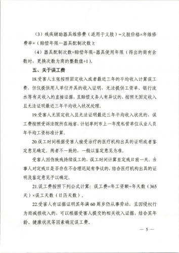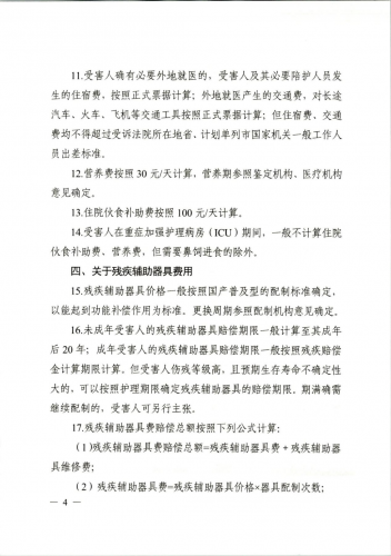 浙江省高级人民法院关于人身损害赔偿项目计算标准的指引