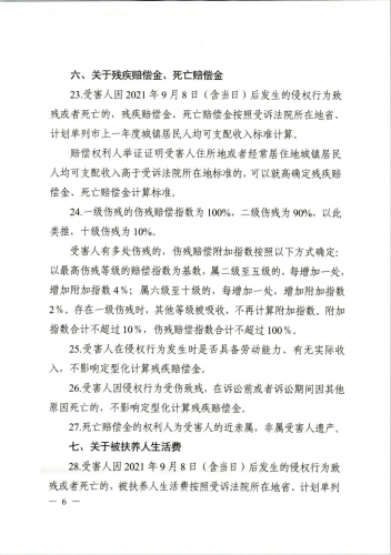 23、受害人因2021年9月8日(含当日)后发生的侵权行为致残或死亡的,残疾赔偿金、死亡赔偿金按照受诉法院所在省、计划单列市上一年度城镇居民人均可支配收入标准计算。