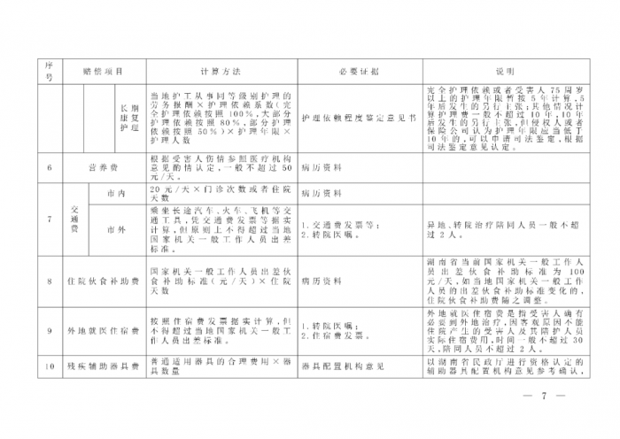 第四,将“住院伙食补助费”的计算方法从“60元/天×住院天数”修改为按“国家机关一般工作人员出差伙食补助标准(元/天)×住院天数”计算。为了便于理解适用,我们还在“住院伙食补助费”的说明部分注明我省当前国家机关一般工作人员出差伙食补助标准为100元/天,如当地国家机关一般工作人员的出差伙食补助标准变化的,住院伙食补助费随之调整。