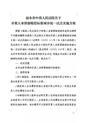 浙江省丽水市中级人民法院《关于开展人身损害赔偿标准城乡统一试点实施方案》3.jpg (20.11 KB, 下载次数: 582)