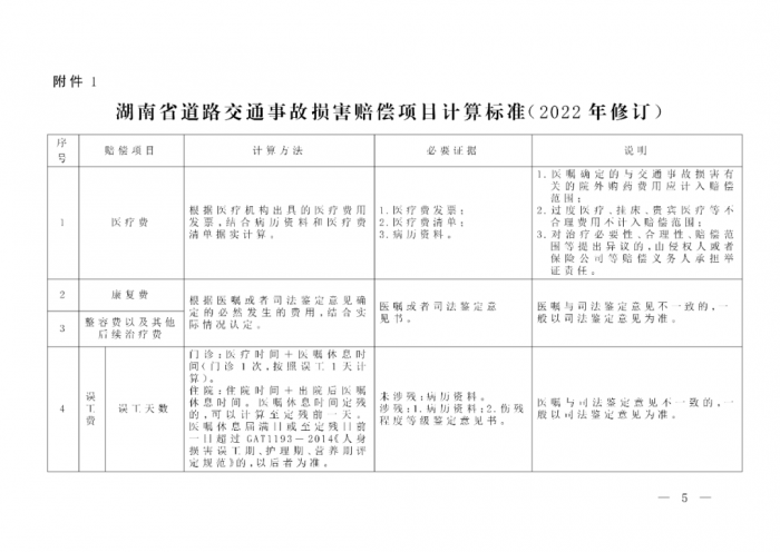 《湖南省道路交通事故损害赔偿项目计算标准》《湖南省道路交通事故主要情形损害赔偿责任比例》(2022修订)