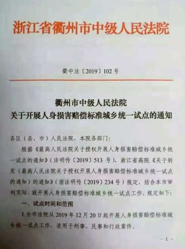 浙江省衢州市中级人民法院关于开展人身损害赔偿标准城乡统一试点的通知.jpg (122.01 KB, 下载次数: 554)