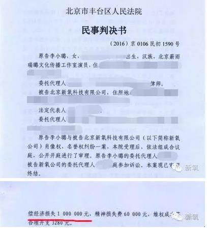 亿邦动力网查询公开资料了解到,这并非李小璐公司首次因为肖像权提起法律诉讼。早在2015年4月,李小璐所在公司就曾因为“侵犯肖像权”起诉了义乌市都市恋人坊进出口有限公司(旗下有内衣加盟连锁机构“都市恋人坊”)。