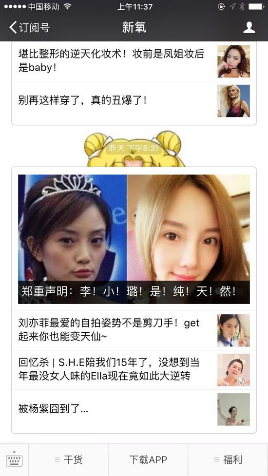 新氧在其公众号最新的推文中虽然通过文字形式向李小璐道歉,但也明显流露出对李小璐方面法律诉讼的不服:“我们从来不认为医美、整形、整容、微整形这些是贬义词,所以我们也不觉得说一个明星整形了、做医美了是在侮辱或诋毁她。反而会认为她们很敬业,这是她们工作内容的一部分。”“有些明星因为工作的原因,不 想承认自己做过整形我们也特别能够理解,只是对一个微信公众号索赔100万实在难以理解。”……