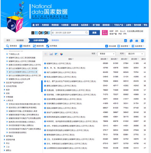 2017 青海省2016年按行业分城镇单位就业人员平均工资