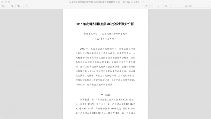 2018 贵州省2017年国民经济和社会发展统计公报