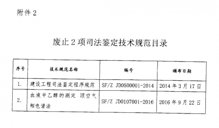 2.废止2项司法鉴定技术规范目录