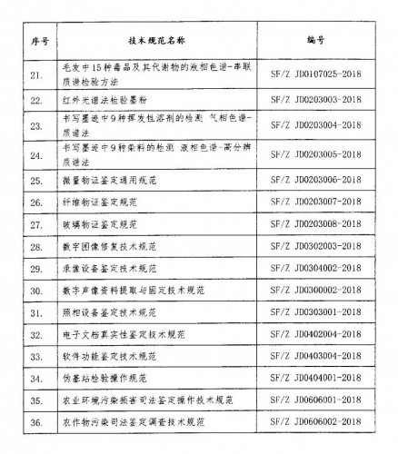 1.新颁布36项司法鉴定技术规范目录