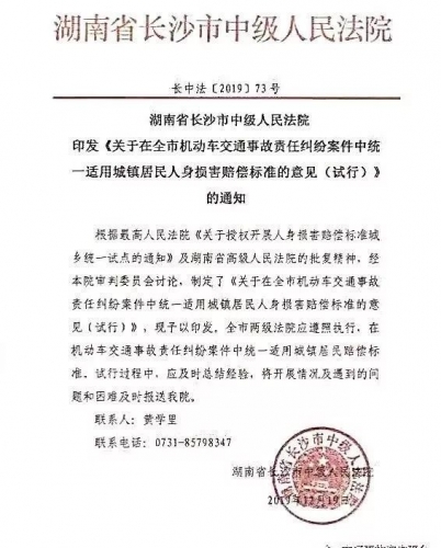 湖南省长沙市中级人民法院印发《关于在全市机动车交通事故责任纠纷案件中统一适用城镇.jpg (70.98 KB, 下载次数: 527)
