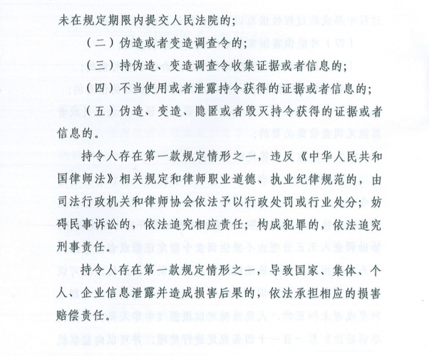 (五)伪造、变造、隐匿或者毁灭持令获得的证据或者信息的。