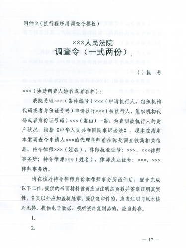 2. 调查令(执行程序用)