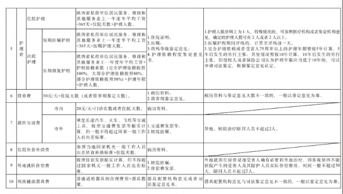 陕西省道路交通事故损害赔偿项目计算标准(试行)