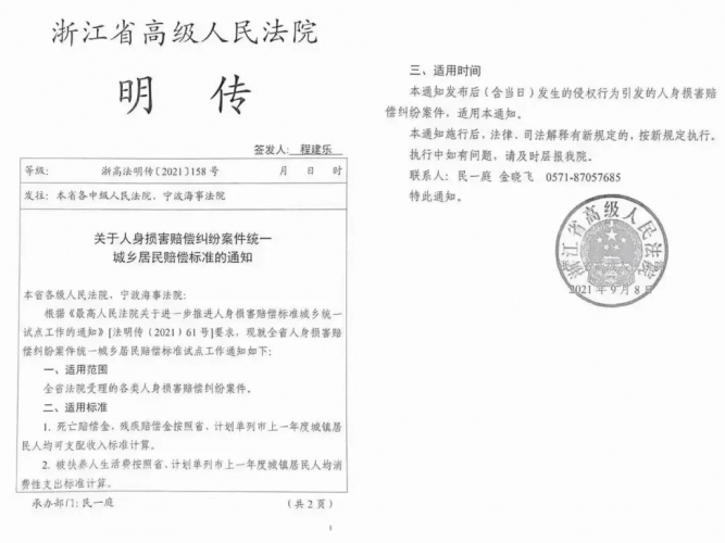发布文号: 浙高法明传〔2021〕158号