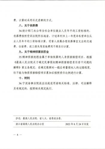 浙江省高级人民法院印发《关于人身损害赔偿项目计算标准的指引》的通知