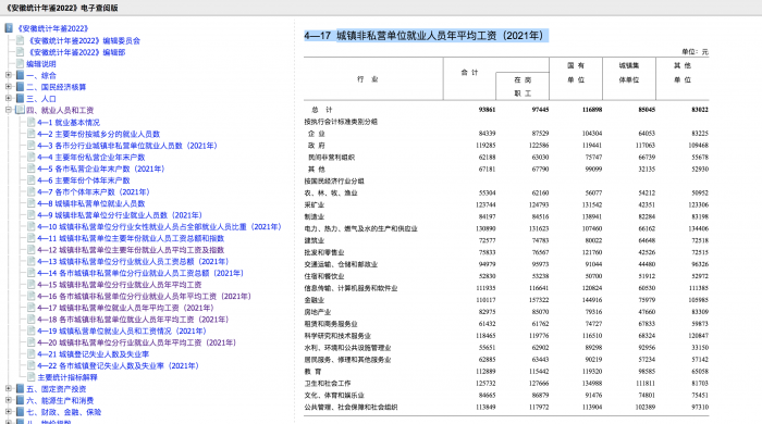 安徽2022统计年鉴4—17城镇非私营单位就业人员、在岗职工年平均工资(2021年).png (776.74 KB, 下载次数: 833)